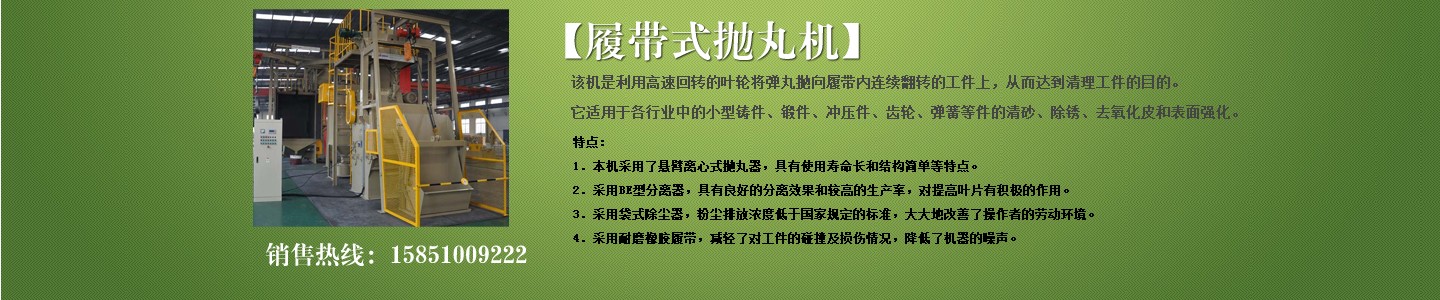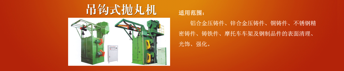公司主要產品有各種型號拋丸機、履帶式拋丸機、吊鉤式拋丸機、懸鏈式拋丸機、通過式拋丸機;各種型號鑄鋼丸、鋼砂、合金鋼丸、強化鋼丸、不銹鋼丸;噴砂設備;環(huán)保除塵設備;鑄造設備;高效拋丸器;各種型號拋丸機配件等,并可根據用戶產品及產量需求設計符合要求的拋丸機;本公司產品從設計、開發(fā)、生產到服務,全過程實行監(jiān)控,其產品在全方位立體的營銷服務網絡中,遍布全國各省市區。